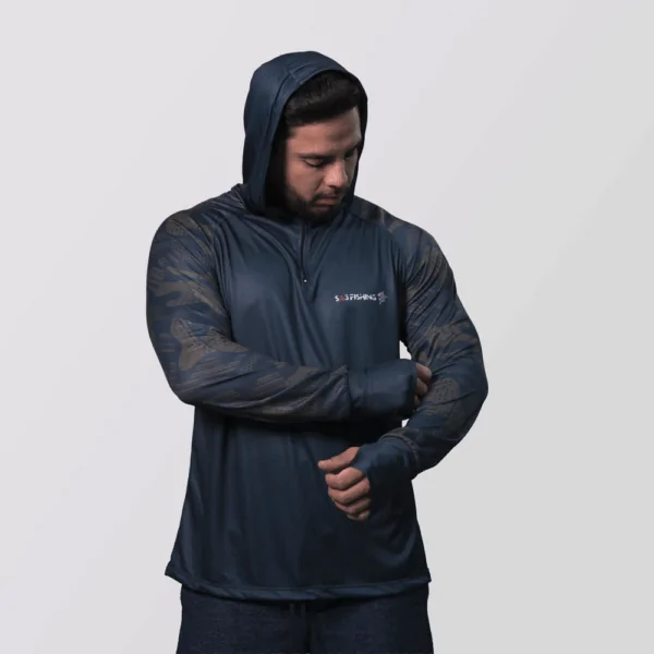 O Modelo Aqua Storm Camo Deep Blue Com Capuz é perfeito para os pescadores que buscam robustez e estilo em suas aventuras. Feita com materiais de alta qualidade, ela oferece proteção UV, respirabilidade e secagem rápida, garantindo conforto em longas jornadas ao ar livre. Feita para quem ama a pesca, mas não abre mão do design, durabilidade e liberdade de movimento. Ideal para enfrentar qualquer desafio na água, essa camiseta é a escolha certa para quem quer performance sem abrir mão de um visual marcante.